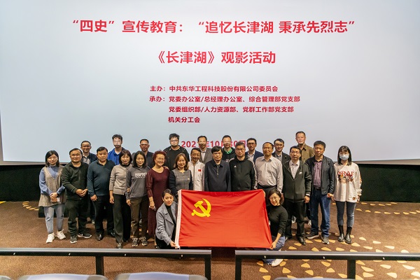 為深入開(kāi)展“四史”宣傳教育,弘揚(yáng)愛(ài)國(guó)主義精神,近日,東華科技黨委辦公室/總經(jīng)理辦公室、綜合管理部黨支部和黨委組織部/人力資源部、黨群工作部黨支部聯(lián)合機(jī)關(guān)分會(huì)開(kāi)展了“追憶長(zhǎng)津湖 秉承先烈志”觀影活動(dòng),公司黨委書(shū)記、董事長(zhǎng)李立新,黨委副書(shū)記、總經(jīng)理郭貴和,工會(huì)主席桂長(zhǎng)田和部分黨員、群眾共同觀看了愛(ài)國(guó)主義電影《長(zhǎng)津湖》。